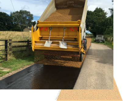 Surfaces described as surface dressed shall have a single/double layer of chippings applied to a hot sprayed coat of bitumen emulsion.